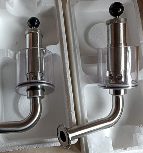 2、氨水罐呼吸阀出厂时,法兰密封面采用塑料保护盖,以免运输途中造成法兰密封面受损,货到现 场安装时,务必要把法兰保护盖取掉,再垂直安装于储罐罐顶部。氨水罐呼吸阀不可横放和倒置,若储 罐顶部需要安装两个氨水罐呼吸阀时,氨水罐呼吸阀与罐顶中心应该对称安装。